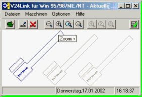 Das Programm V24Link für Windows 95/98/ME/NT/2000 unterstützt Sie bei der Verwaltung von NC-Programmen für viele Arten von CNC-Maschinen und deren Übertragung von und zu den angeschlossenen Maschinen.